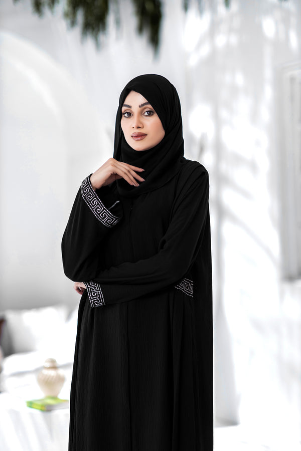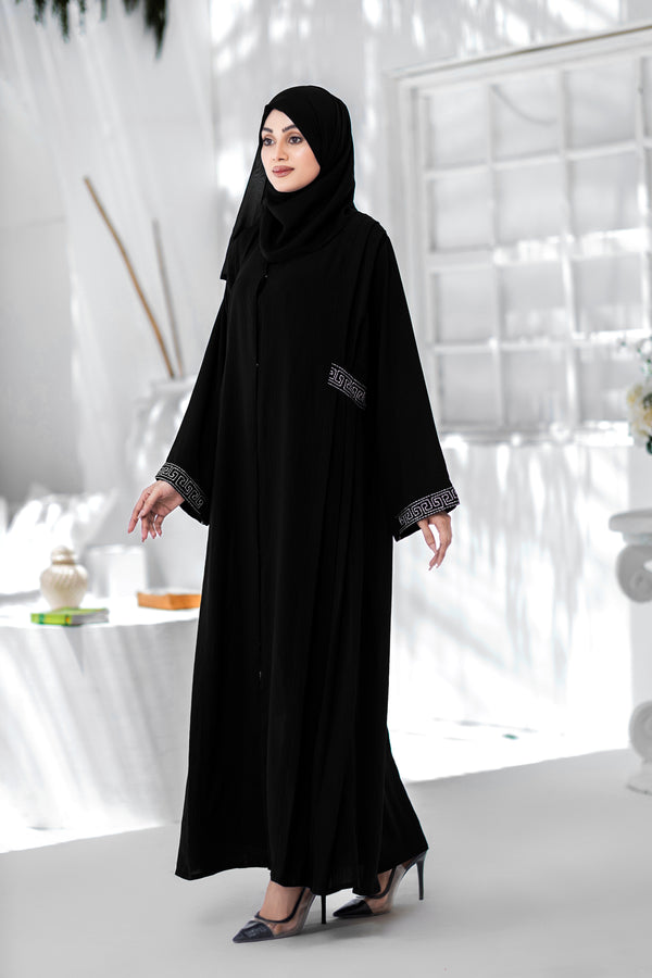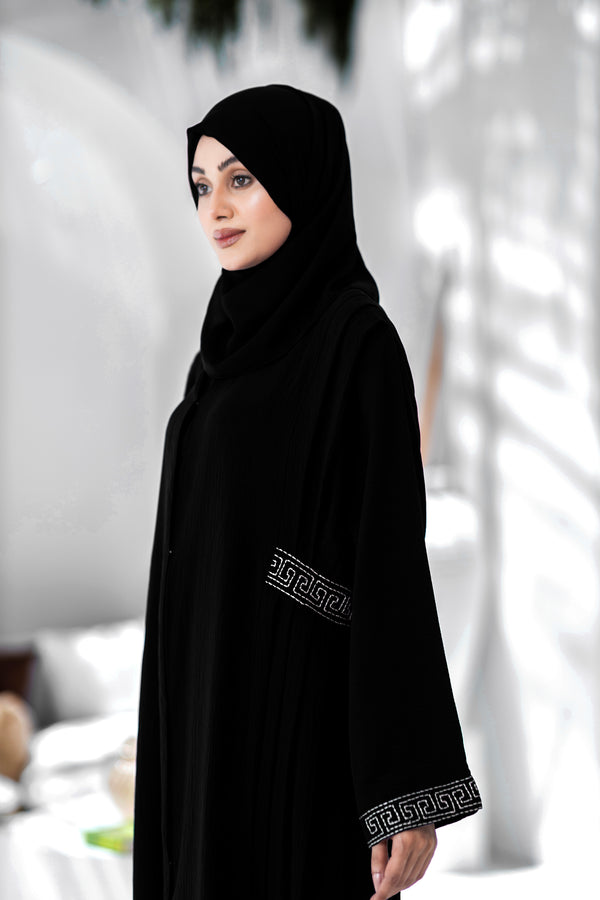 Introducing our new Black Abaya, crafted with luxurious Nidha fabric for a soft, elegant feel. Adorned with exquisite embroidery, this abaya combines tradition with modern sophistication, perfect for any occasion. Elevate your wardrobe with this timeless piece that promises both comfort and style. Embrace the royal elegance and make a statement with our latest collection.