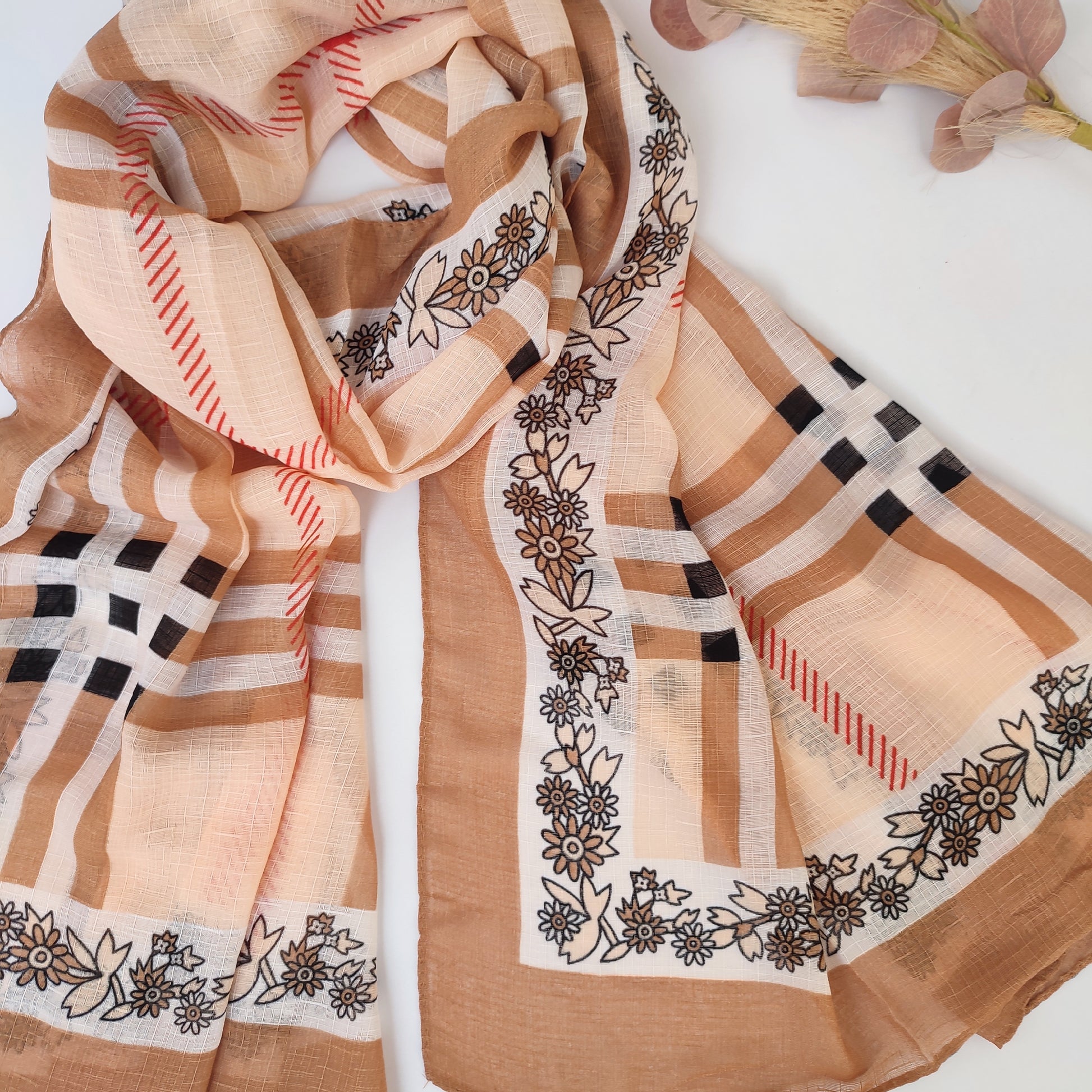 - *Style:* The check print with floral borders gives it a unique and stylish look, perfect for any occasion.