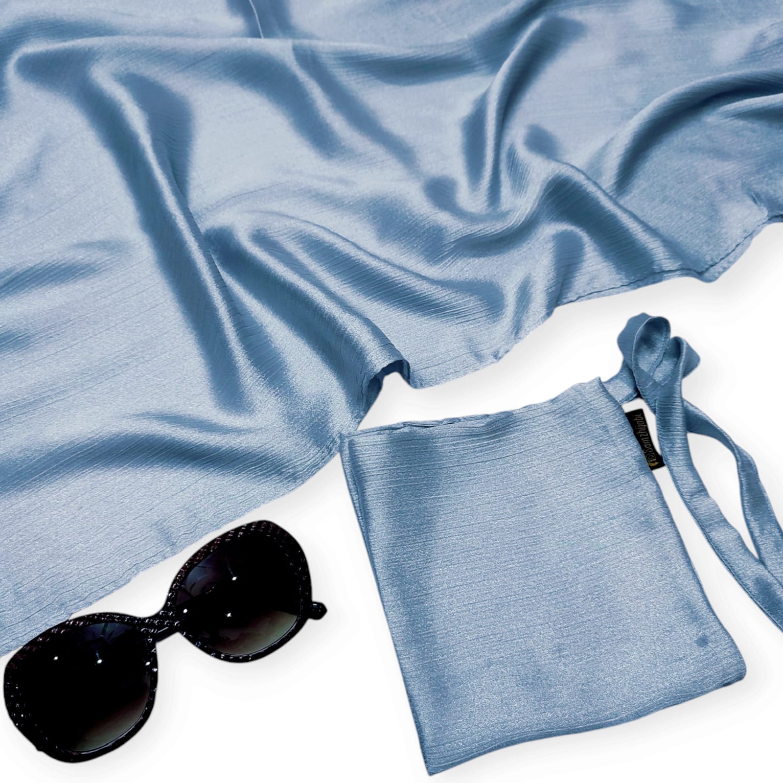 Crinkle Silk Hijab Naqab set_Denim Blue