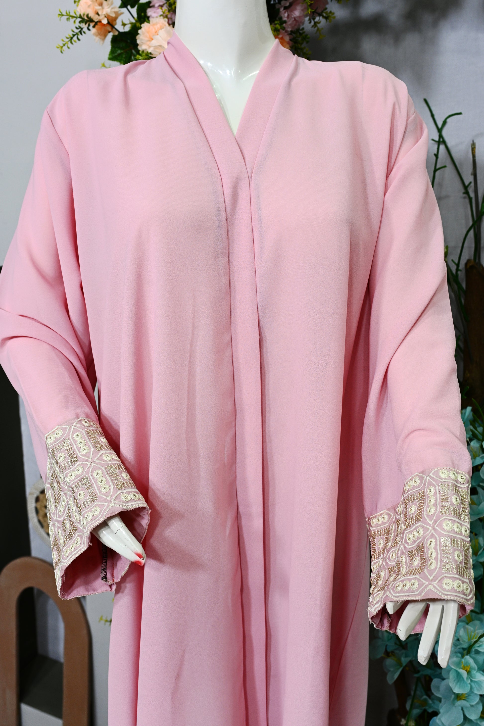 "Elevate your modest wardrobe with our stunning Korean Georgette abaya. Crafted from luxurious Korean Georgette fabric, this abaya drapes elegantly and flows beautifully. The intricate design and subtle details make it perfect for formal occasions.