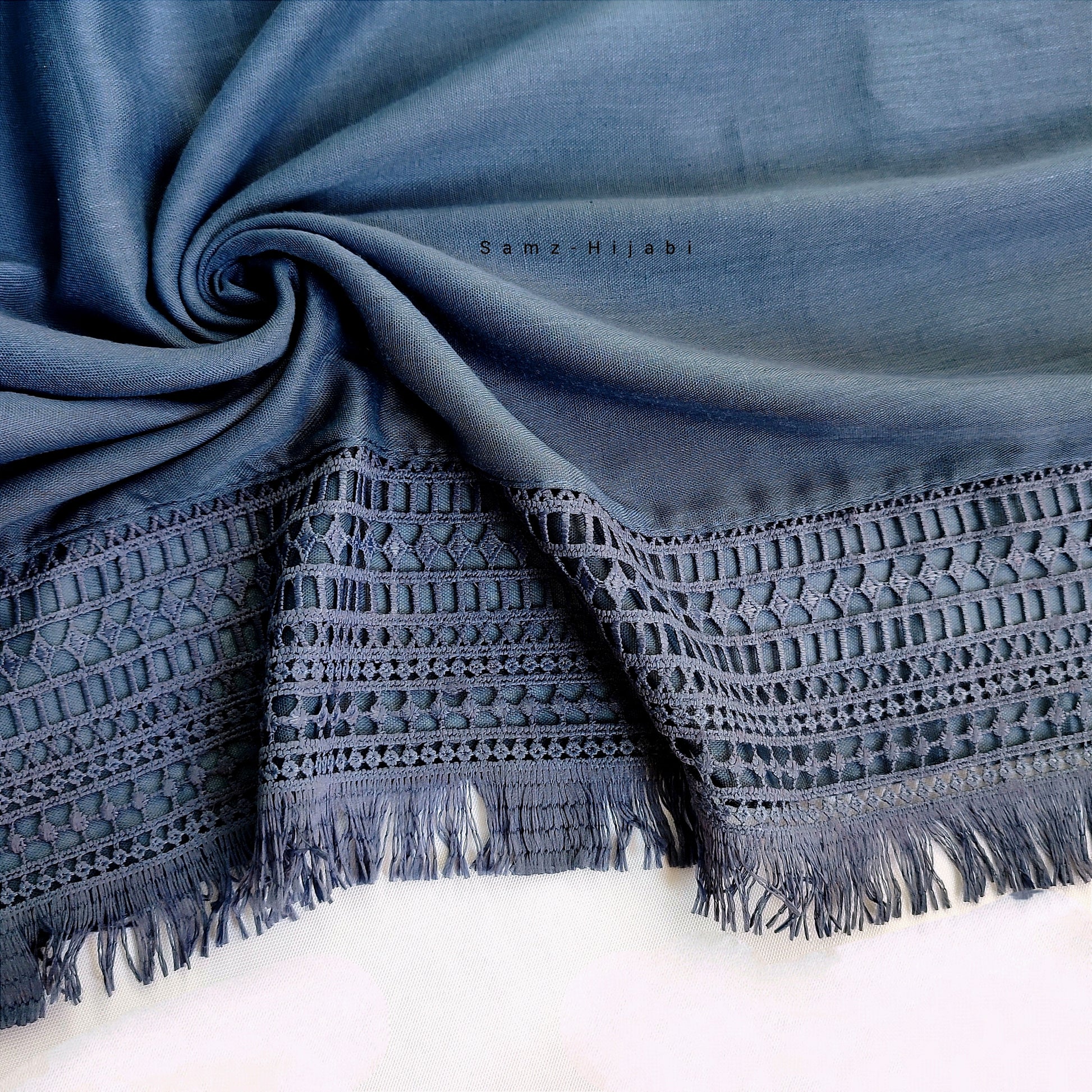 Lace-Edges Hijab Charcoal Denim