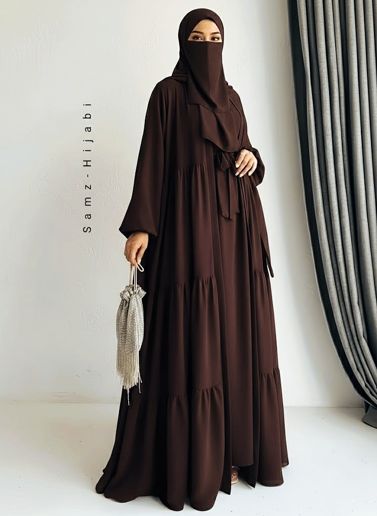 Majestic Tripal Frill Abaya (Choclate Brown)