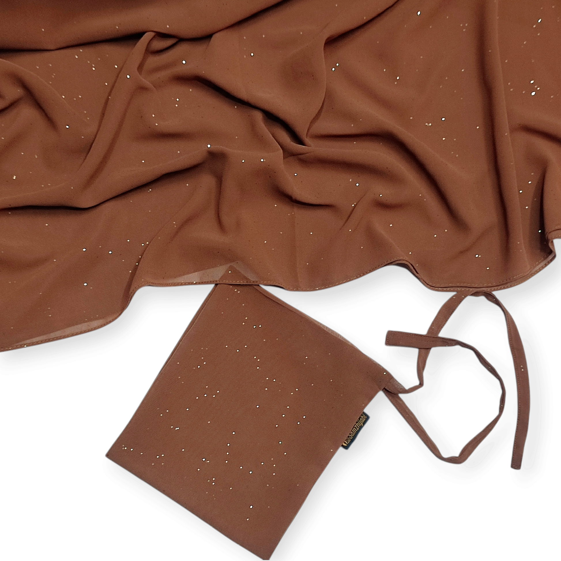 Sparkling Glitter Hijab Naqab Set Camel Brown