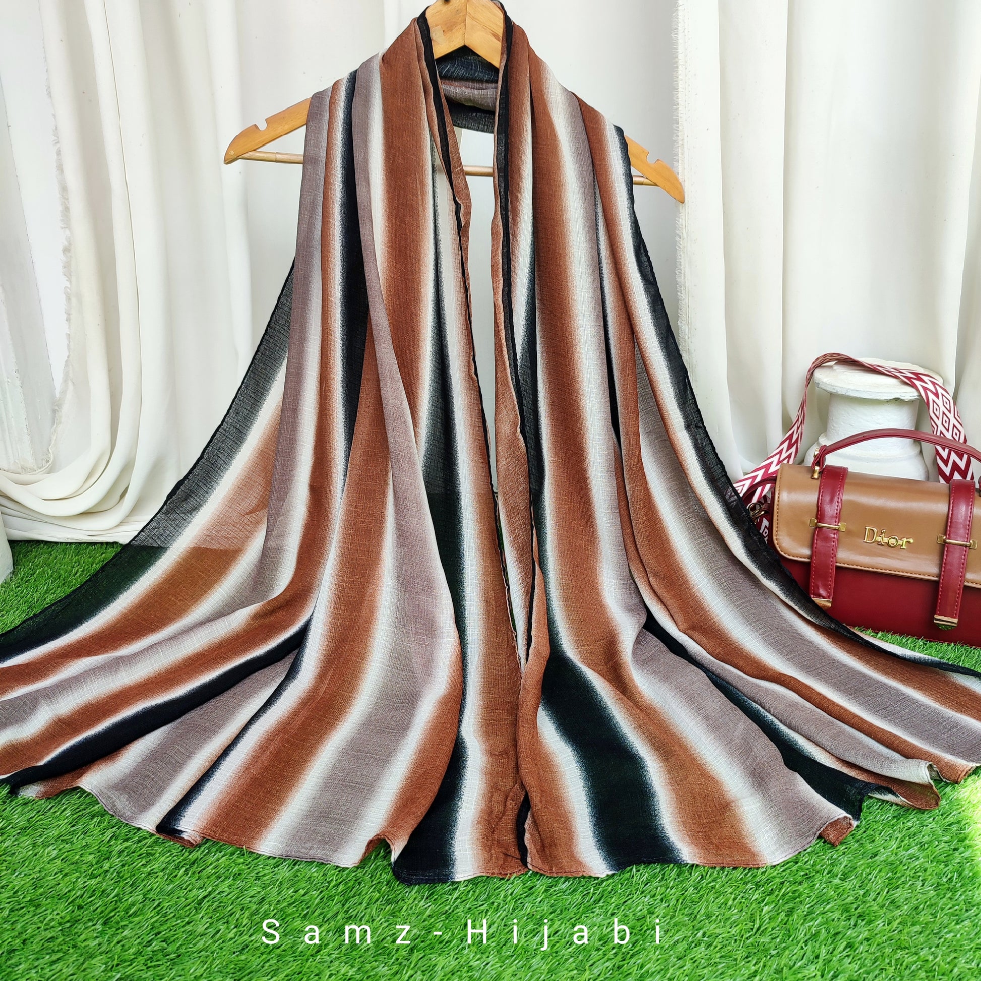 Multi Striped Morrocon Lawn Hijab_ Black Brown
