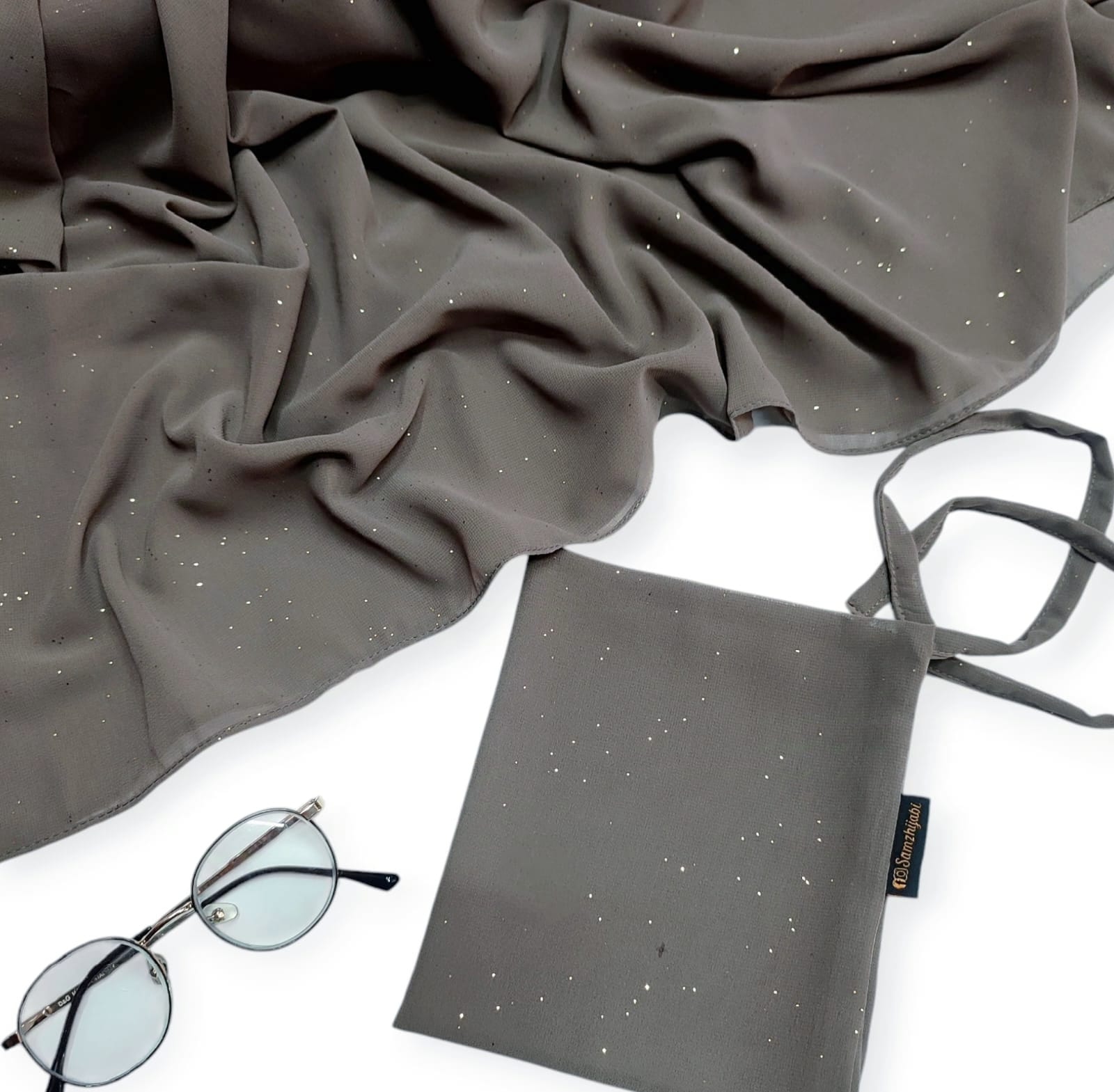 Sparkling Glitter Hijab Naqab Pestal Pink ( Peanut Grey)