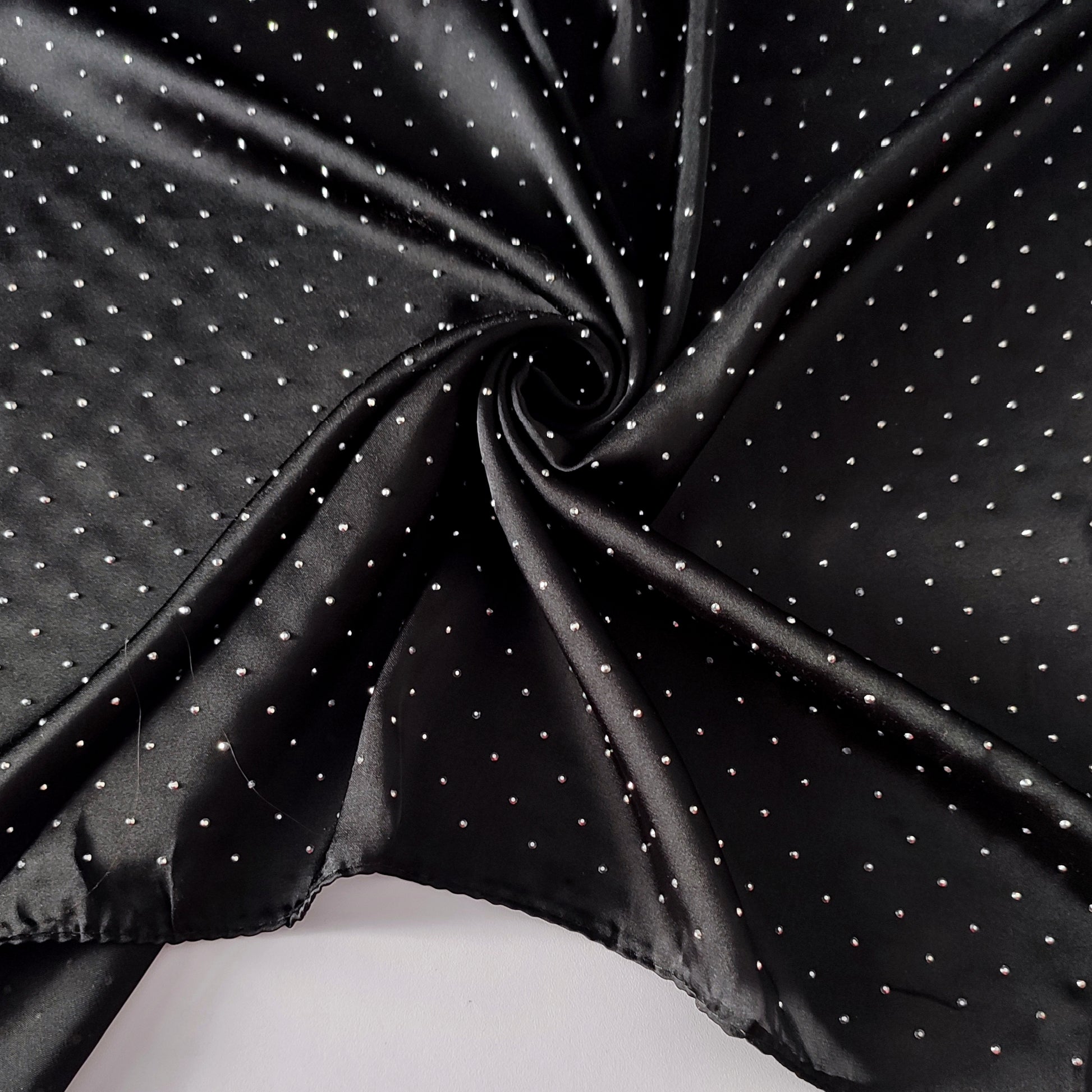 Add a touch of elegance to your creations with our exquisite satin silk fabric featuring stunning silver stone accents on top. Perfect for crafting beautiful dresses, scarves, or home decor, this fabric boasts a smooth, lustrous finish and a subtle sheen.