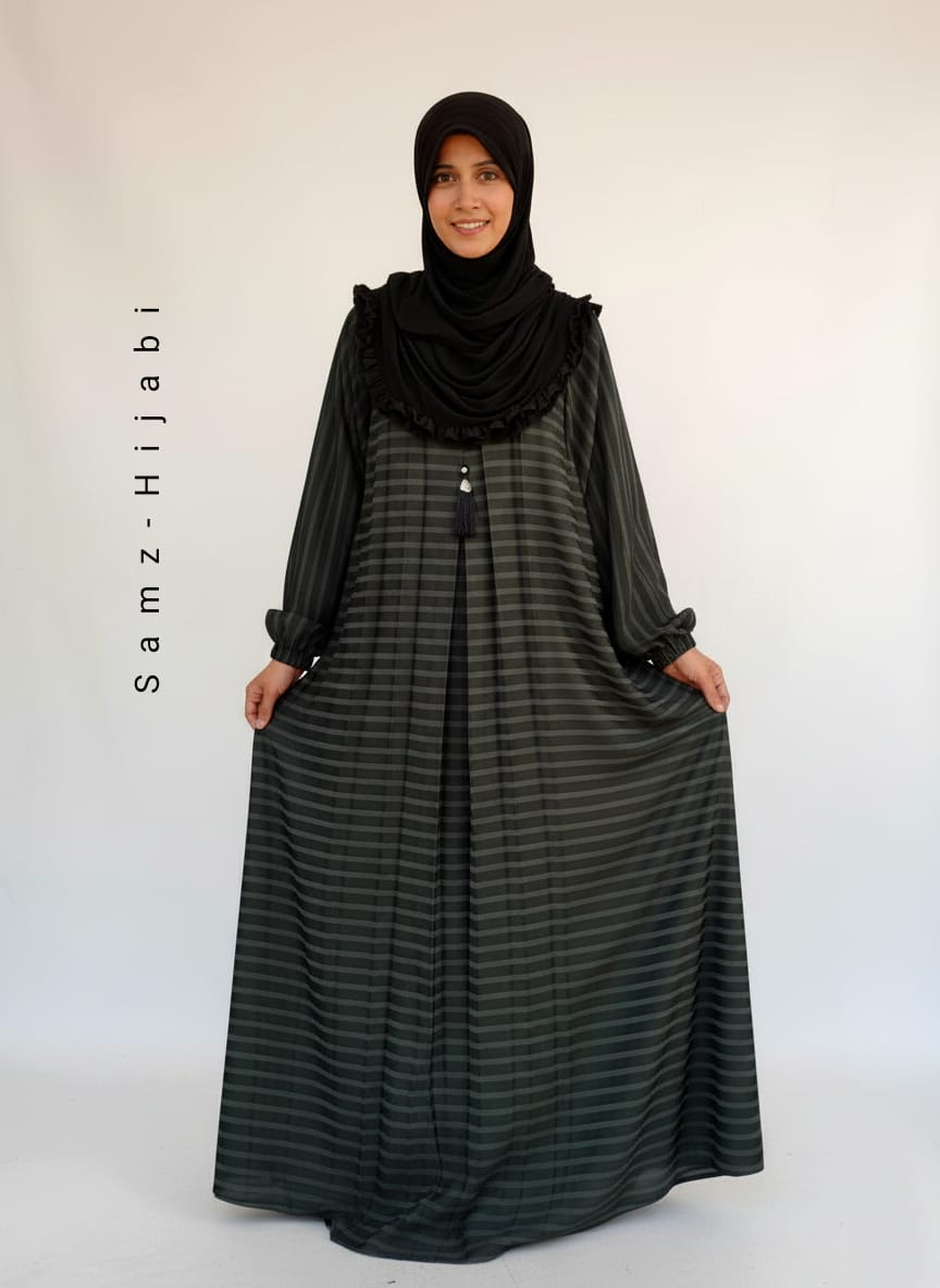 Make a statement with our stunning Stripped Style Nida fabric abaya!