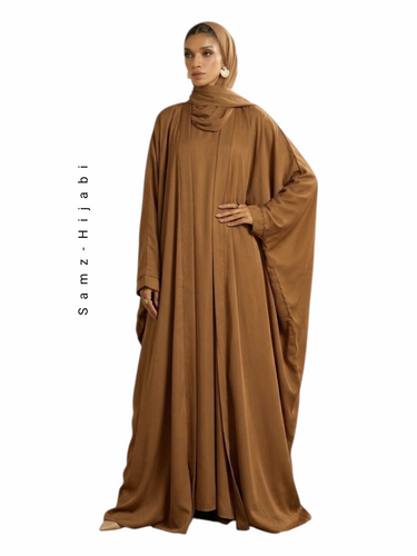 Our Most Demanded Hit Code is Back* — meet the _Separate Upper Butterfly Abaya_ in elegant Camel Brown. Designed for effortless grace and summer comfort, this trendy 2-piece set gives you styling freedom for both daily wear and special occasions.